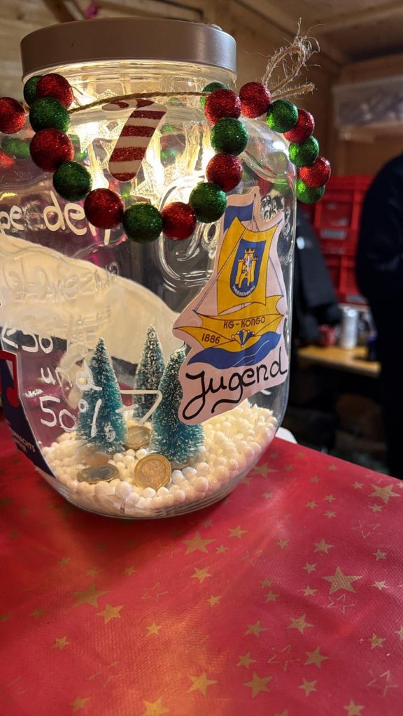 Einige Mitglieder der Stadtgarde kamen ebenfalls vorbei und hatten eine schöne Überraschung im Gepäck: Beim Glühweinfest wurden Spenden für die Jugendabteilung der KG Kongo gesammelt. Insgesamt kamen beeindruckende 127,55 Euro zusammen!